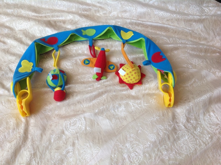 Детские принадлежности и игрушки!Продам дугу известного бренда Tiny Love, можно вешать на коляску, автокресло, стульчик, кроватку и пр. Все это возможно благодаря специальным креплениям - пластиковым клипсам. Наклон дуги тоже можно менять.дополнительно отдаю погремушку на коляску (бабочки). За все вместе - 600 руб.
