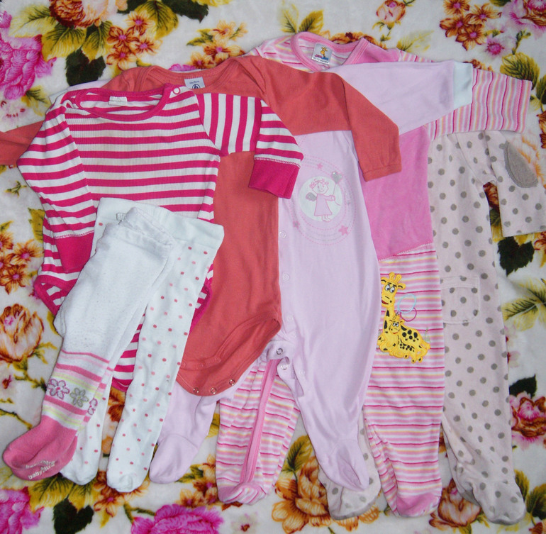 Девочка 0-6 мес.(56-68 см.)2е велюровые бодюшки (в горошек и в полоску), 1 тоненький - в идеальном состоянии.