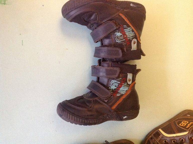 Обувь для мальчика2 пары ботинок состояние хорошее коричневые надели 2 раза чуть зацепили носы можно закрасить не успели поносить совсем ( можно замазать в жизни