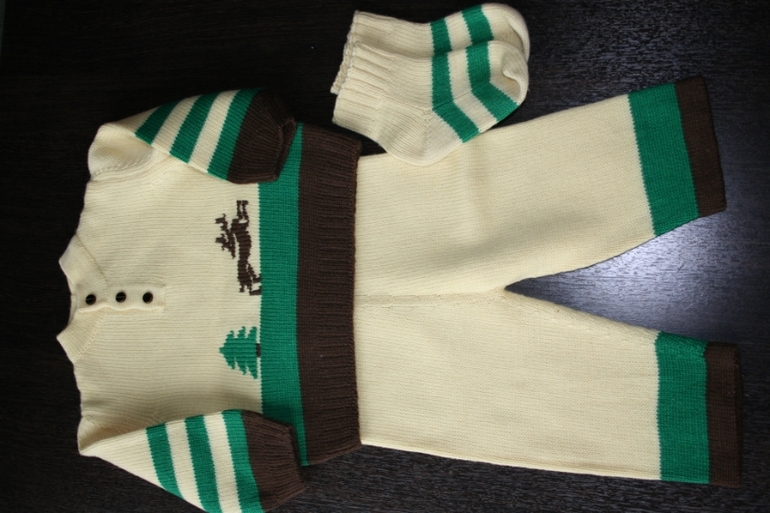 2) Костюмчик+носки, связан на заказ, чистая шерсть, р.68, состояние нового, 1300 руб.