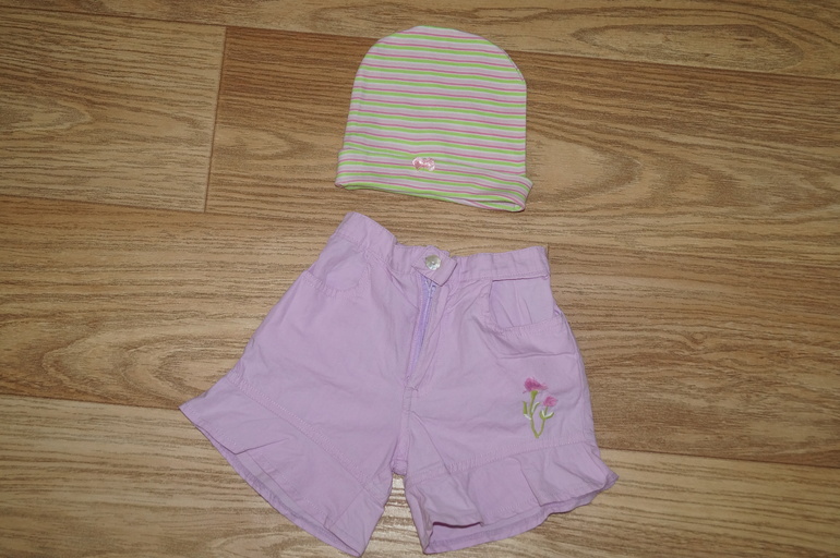 9. Хлопковые шорты и трикотажная шапочка. Состояние хорошее. Активно б\у. Идеально для прогулок и песочницы.