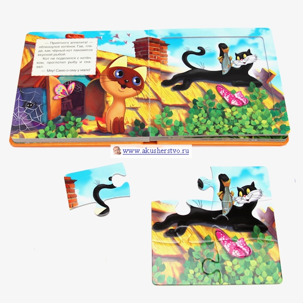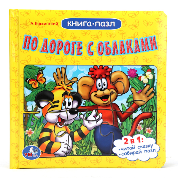 книги с пазлами По дороге с облаками ссылка и Котенок гав ссылка от Умка, в идеале, очень красочные иллюстрации, толстые страницы, легко собрать (под пазлом рисунок, по которому собирают) -150р за каждую