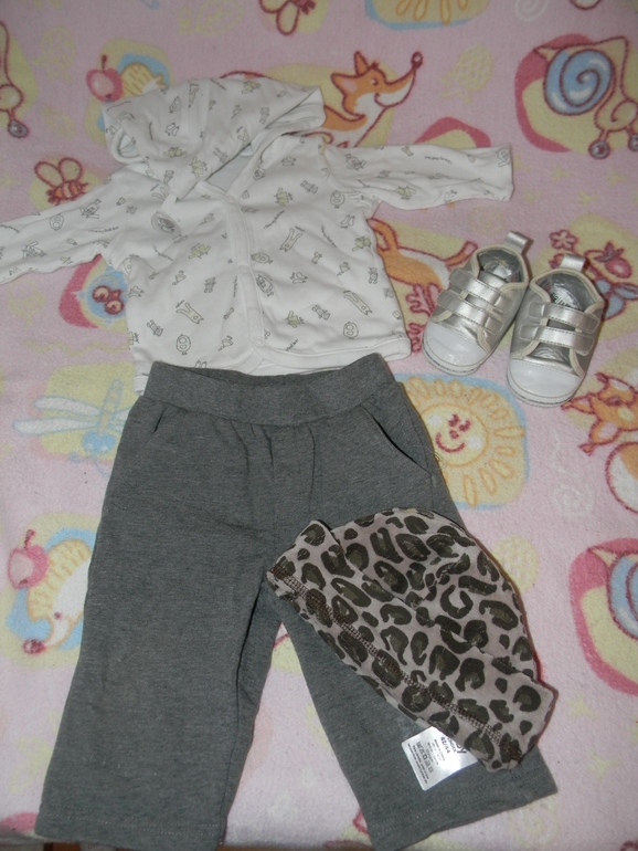 Комплект брюки+толстовка+шапочка(Линдекс)+мягкие кеды(Marks & Spencer).За все 400руб.Или по отдельности.Примерно на 6-9мес.