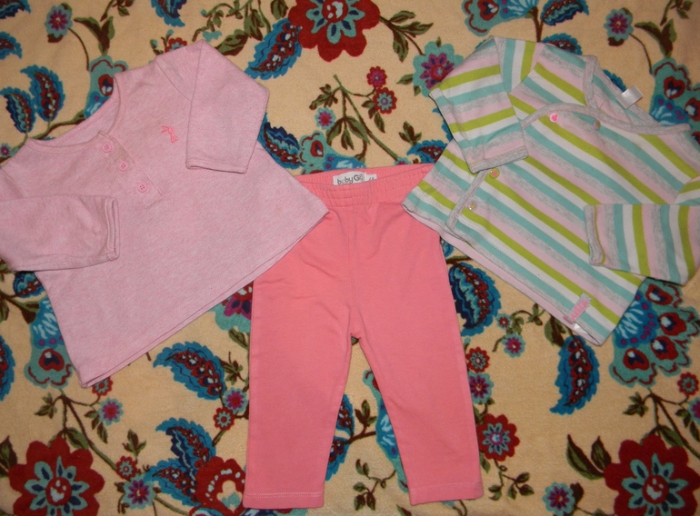 Лосины Baby Go,кофточка в полоску Cool Club,розовая Mothercare.Все примерно на 3-7мес.