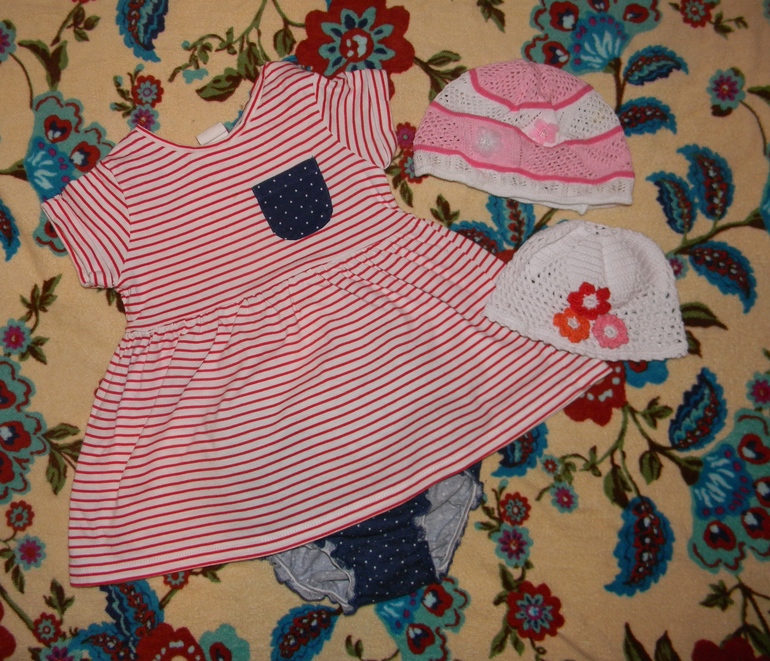 Платье с трусиками H&M.Плюс две шапочки.Все вместе 300руб.На 62-68 см.