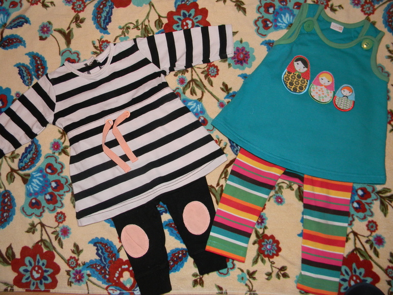 Комплекты туника+лосины,все Линдекс.Примерно от 62 до 74см.Любой комплект за 300руб
