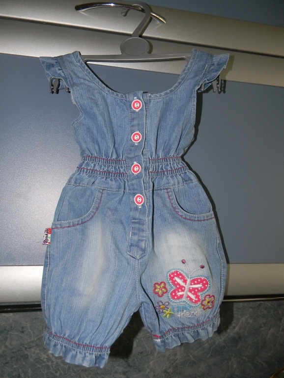 Джинсовый песочник.На худенького ребенка.Примерно на год.300руб