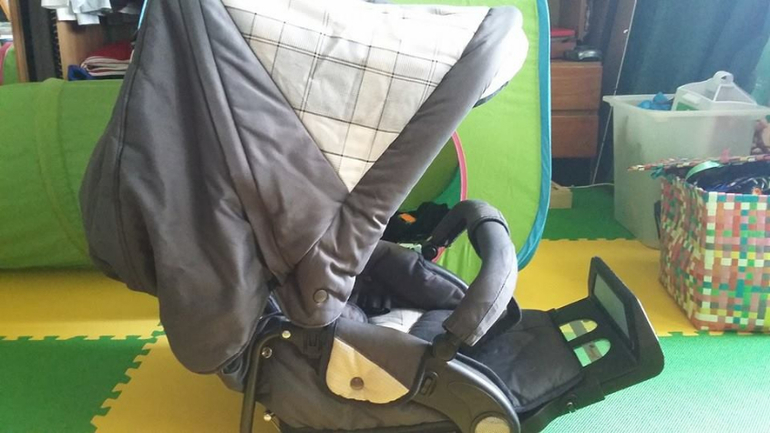 имеет встроенную жесткую ручку на капюшоне для транспортировки малыша