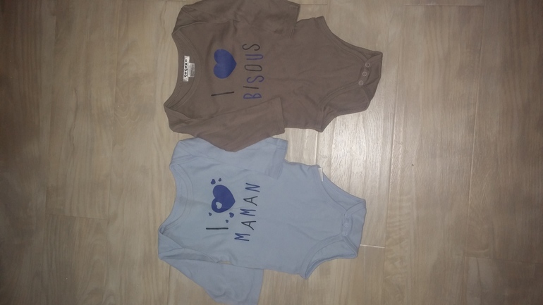 2 боди Baby Go. Размер 68 см, но маломерят. На левом сзади есть малюсенькая дырочка. 150 р. за оба.
