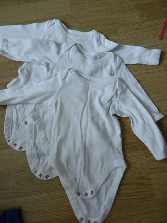 11. ПРОДАНО Бодики Марк энд спенсер. У двух верхних горлышко потертое с застиранными пятнышками. на фото не видно. Третий чистый полностью. с 3 до 6 месяцев, но до 7 на стройного малыша - вполне можно. Все три за 200 рублей.