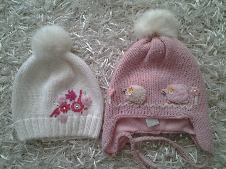 21. Шапка (красная в горох), подклад флис, ручная вязка. Одевали 1 раз, цена 700 руб.