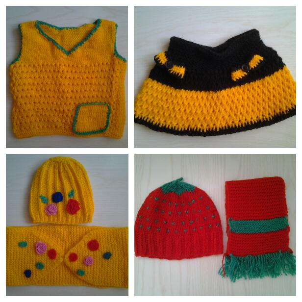 28. Новый комплект шапка + шарф (ручная вязка), цвет - желтый, красный, цена 500 руб. каждый.