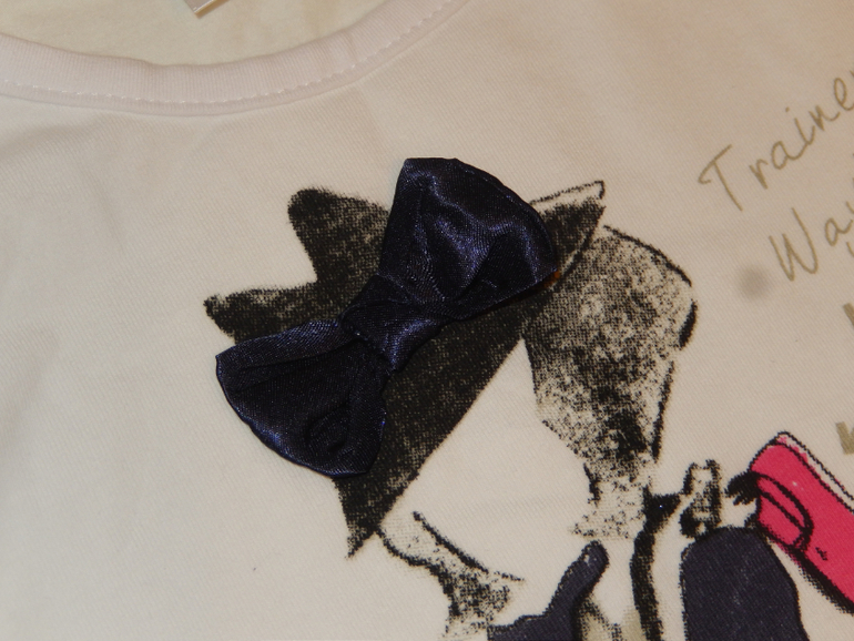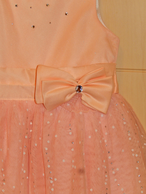 Цвет нежный,персиковый,бант на груди отстегивается.