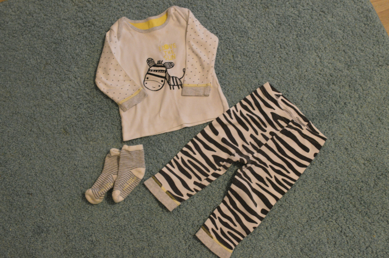 Наборчик Mothercare 9-12 мес с зеброй пижамка 250 руб,носочки +