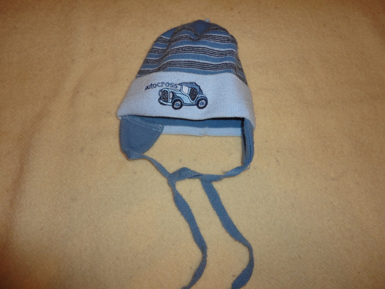 3. Голубая шапка с завязками. Отлично сидит на голове. 40-42 см. Цена 100 руб.