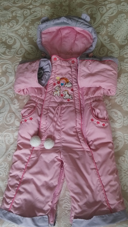 Девочка 6-12 мес.(74-80см.)Продаю зимний комбинезон-трансформер со съемным мехом 80 разм. производства компании ОЛДОС. В комплекте имеются пинетки и варежки. Подстежка натуральная шерсть, утеплитель холоффан, подклад х/б.