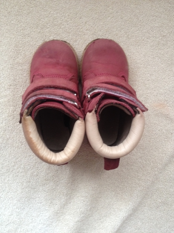 1.Демисезонные ботиночки брусничного цвета 23 размер (идет на 24), большемерят.