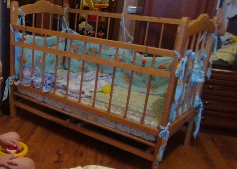 Детские принадлежности и игрушки!Продам кроватку ,1500 цвет на фото, верх переднего бортика опускается для удобства мамы, 2 положения дна, 2 выдвижных ящика, резной рисунок на боковых бортиках