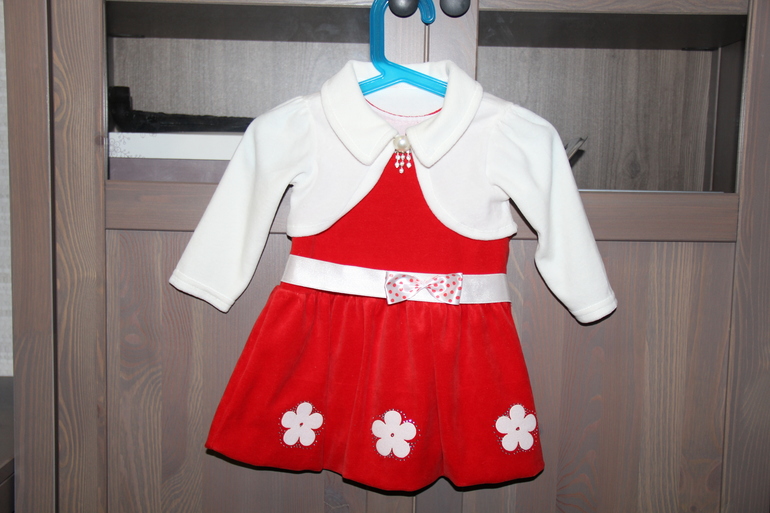 Девочка 6-12 мес.(74-80см.)Сарафан с болеро надет один раз на год (велюр -хлопок) Болеро и пояс снимается.