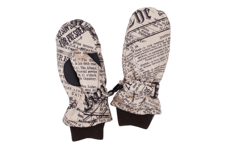 Варежки - теплые плащевые варежки на синтепоне с орнаментом "газета" - незаменимый атрибут для продолжительных зимних прогулок. Трикотажные подвязы исключает попадание снега внутрь. Деталь из искусственной кожи, укрепляющая ладонную часть варежек, делает их практичными при длительной активной эксплуатации.