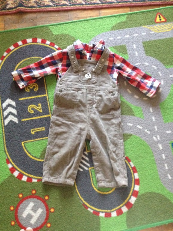 К этому же комбинезону рубашечка тонкая хлопковая в клетку, мало б/у.