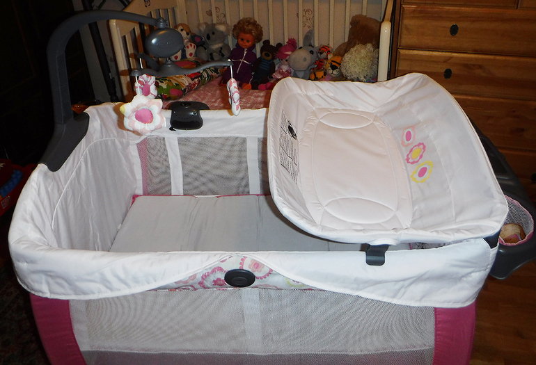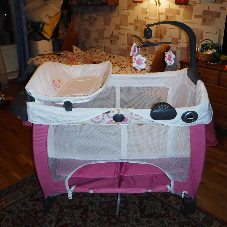 Куча кармашков, органайзер, приятный музыкальный мобиль с цветочками, вибрирующий модуль для укачивания, музыка и звуки природы, ночник. Удобное ложе для пеленания.
