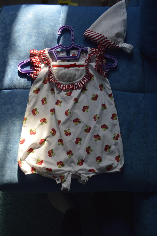 4. Комплект Monnalisa ,б,у 1-2 раза , косыночка на резинке и песочник(ромпер), размер 80-86 , от 74 и дольше можно носить. 1000руб