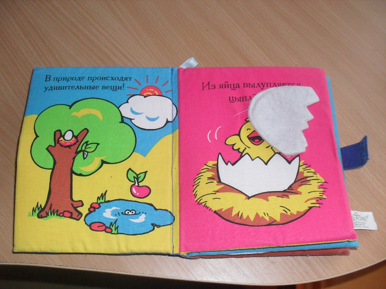 Малышам понравиться играть с ней, трогать, ощупывать. Чтобы увидеть маленького цыплёнка, надо поднять шуршащую скорлупку. Ребёнок будет открывать, приподнимать, разворачивать мягкие детальки, чтобы увидеть прячущиеся сюрпризы. Размер книги: 21 х 8 х 16h см.