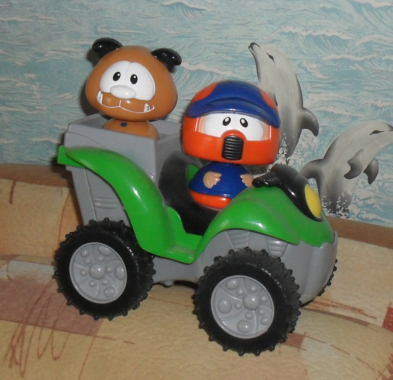 машинка со звуковыми эффектами и вибрацией. Фигурка водителя и собаки снимается. 250 руб.![]()
