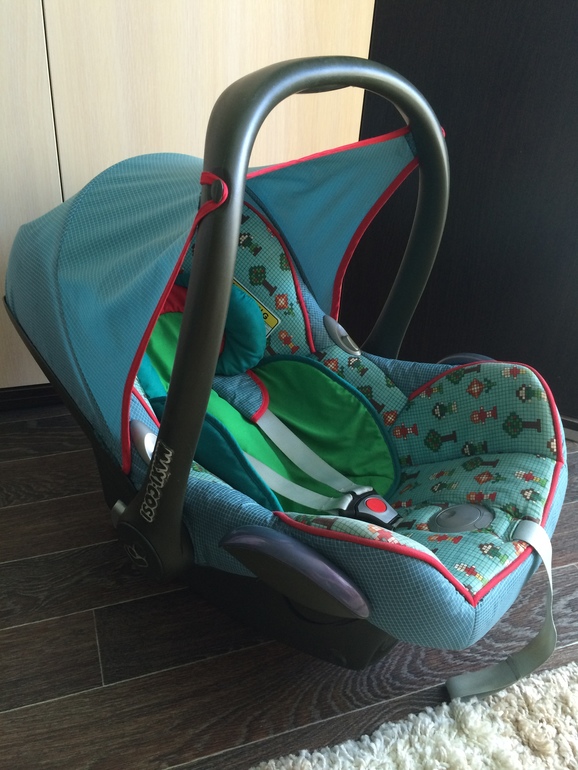Есть вкладыш для новорождённых. Откидной капюшон. В хорошем состоянии. Для детей весом 0-13 кг.