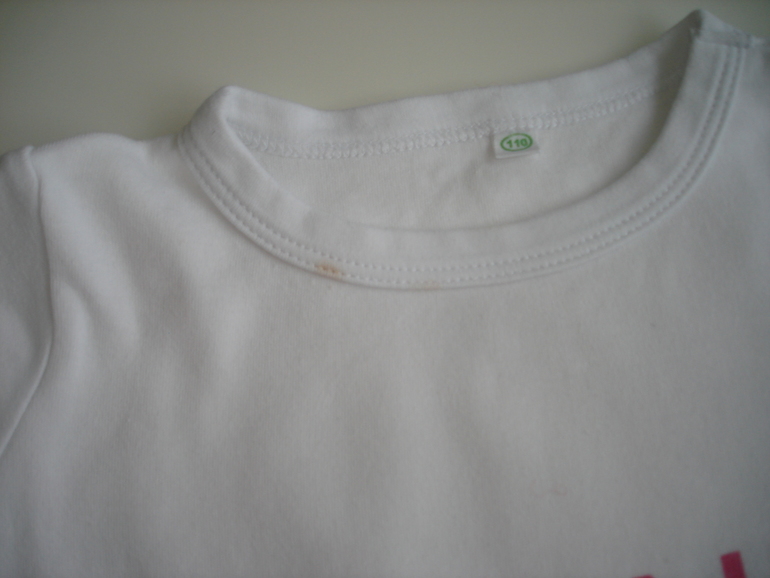 Есть маленькое пятнышко на вороте. Вывести не пыталась.