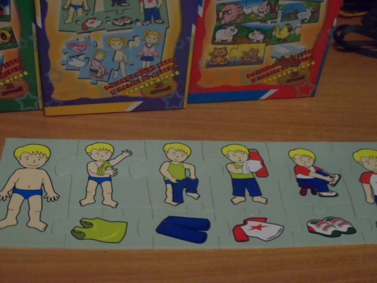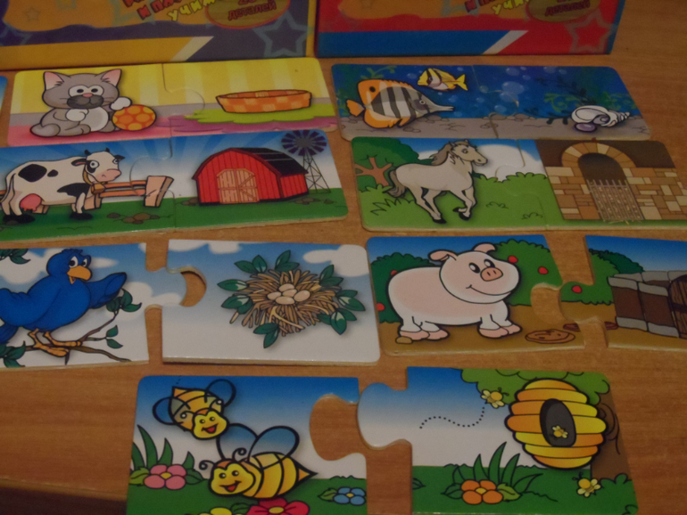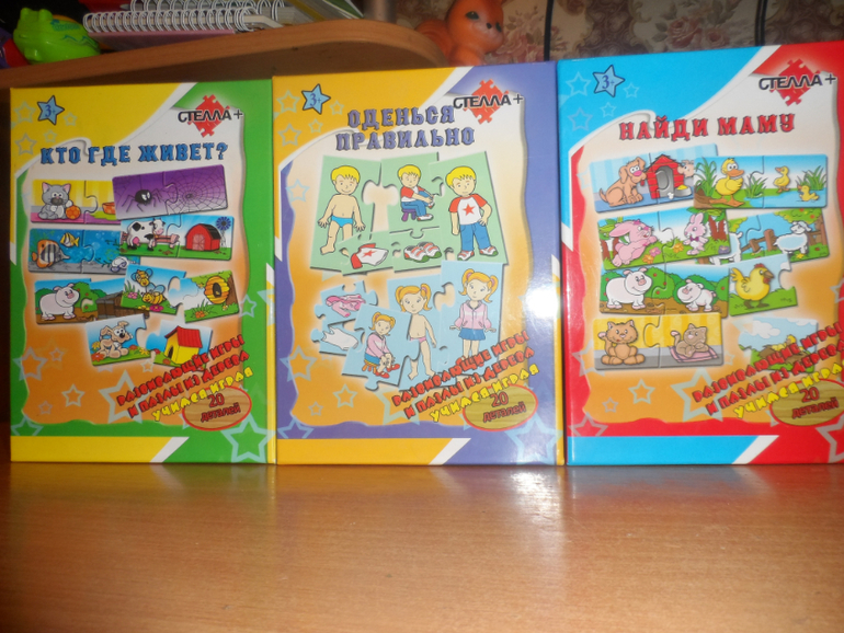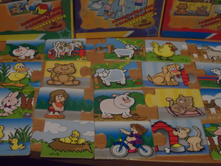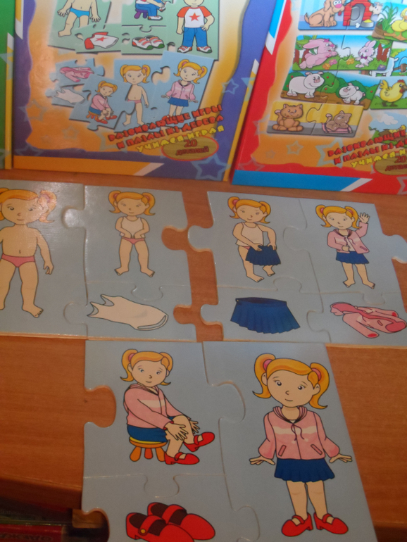 2.) Обучающие паззлы : 1. кто ,где живёт, 2. найди маму, 3. одень мальчика и девочку. Одна коробка 100 руб.. ПРОДАНЫ