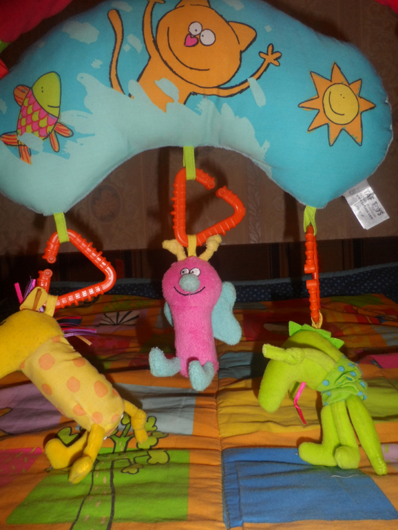 7.) Игрушки-подвески : пищалка, тянучка , колокольчик. 100 руб. и коврик(1,5*1 м) в придачу.ПРОДАНО