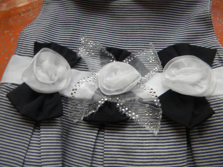 7.Платье Monsoon , размер 5-6 лет , можно раньше- позже, свободного кроя, сверху шифон, внизу ХБ подклад. Спереди по горловине шифоновые цветочки, с бисером внутри. Цена 1000руб. ПРОДАНО!