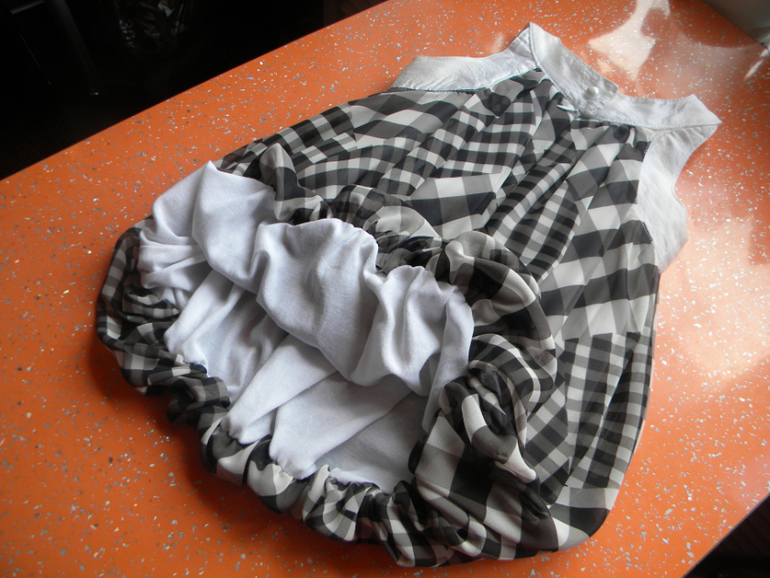 Замеры : ОГ- 30см,длина от плеча до низа 56см . Мы одевали на рост 94см и 104см.