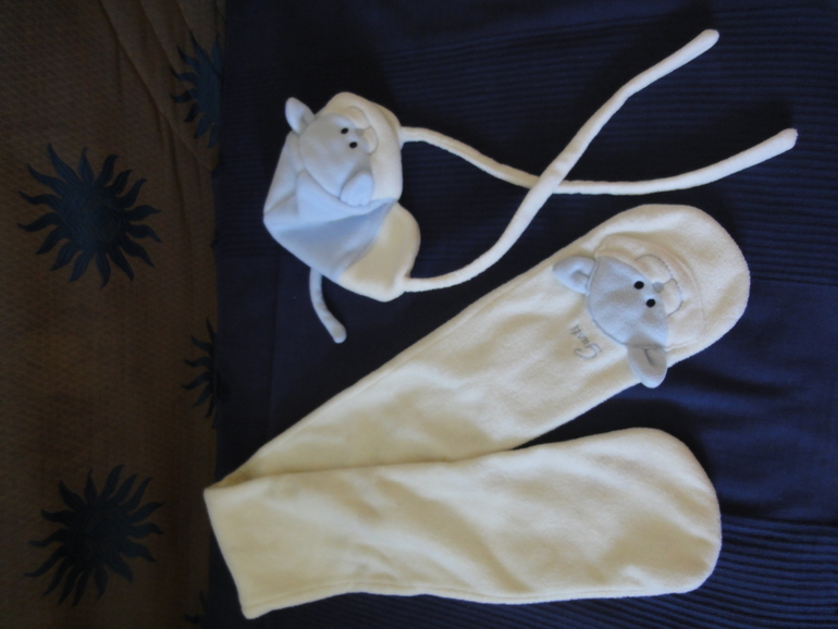 Конверт-трансформер превращается в комбинезон при необходимости. Отличное качество, состояние идеальное. Покупался заграницей. Идёт в комплекте с шапочкой и шарфиком.