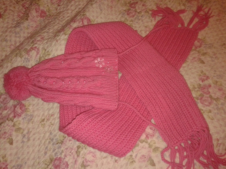 Девочка 2-3 года(92-98 см.)Очаровательная шапка и шарф для малышки. На 2-3-4 годика в зависимости от комплекции малышки. Шерсть, но обработанная, чтобы не кололась.