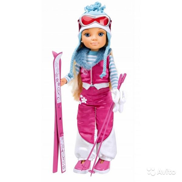 Кукла из серии "Зимняя красавица" одета в розовый горнолыжный костюм, лыжные ботинки, очаровательную шапочку с косичками и розовые защитные очки. В набор, конечно же, входят и сами лыжи розового цвета, в тон костюма Нэнси!