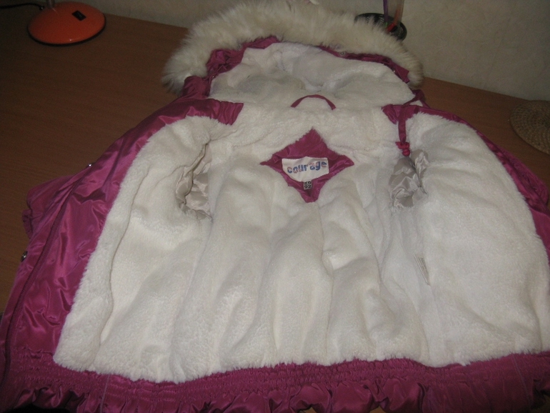 Девочка 18-24 мес(86-92 см.)Куртка на синтепоне. Очень тепленькая, красивая и удобная. Подкладка из какой-то изумительно мягкой ткани. Носили с роста 82. На фото у девочки рост 98. Ни разу не пожалела, что носим такую - теплая, уютная. Состояние на 5.