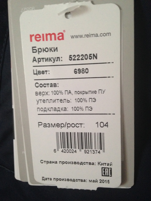 Брюки Reima без утеплителя Slana по 1750 руб: