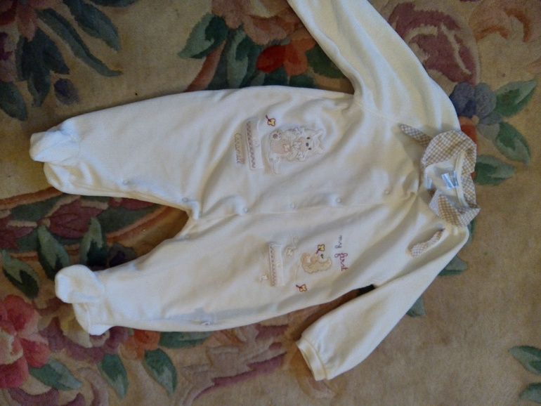 1. Комбез хлопок, немного утеплен. 62 р-р. Брали на выписку и носили до 3-4 мес. 250 руб