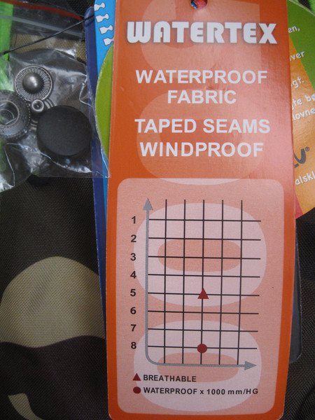 Ветронепродуваемый, водонепроницаемый (watertex 8000), мембрана 5000.