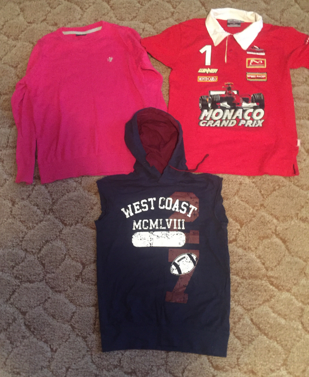 Мальчики 10 лет(134-140 см.)В связи с глобальным разбором шкафов подаём пакетами детскую одежду. Все вещи куплены зарубежом: Armani, gap, next и проч. В данный пакет включён: утеплённый жилет Armani, две пары утеплённых брюк-непромокайки, джинсы, свитер, лонгсливы, пиджак, три школьные рубашки,бриджи, футболки и проч. Всего 18 вещей. Цена-6500