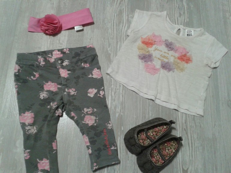 1. Брюки Кельвин Кляйн , майка zara, пинетки и повязка H&m размеры 3-6 за все 600р