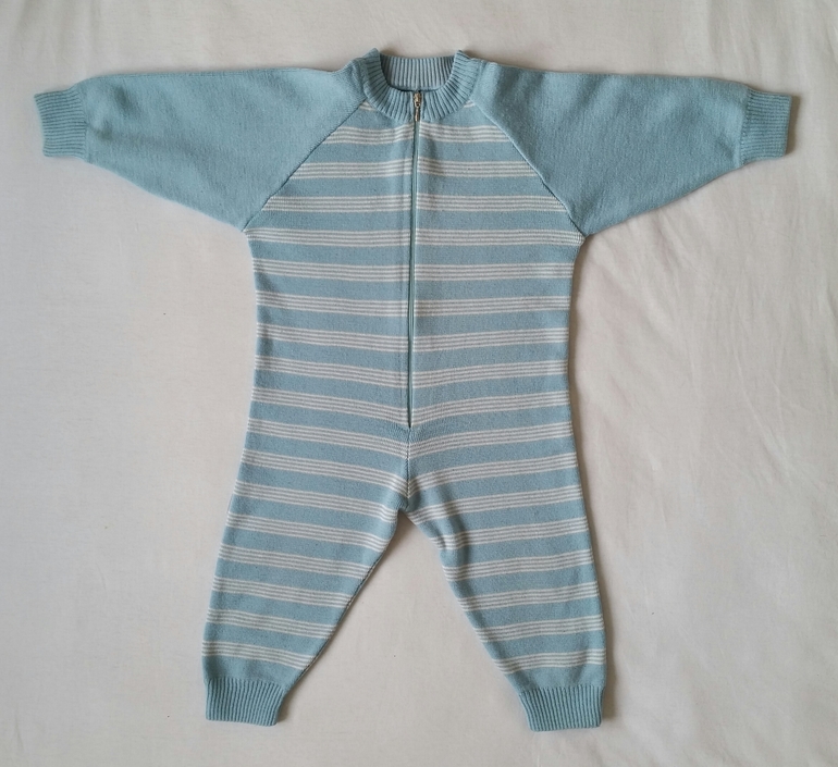 1) Голубой комбинезон в белую полоску на рост 86 см (+6см запас)