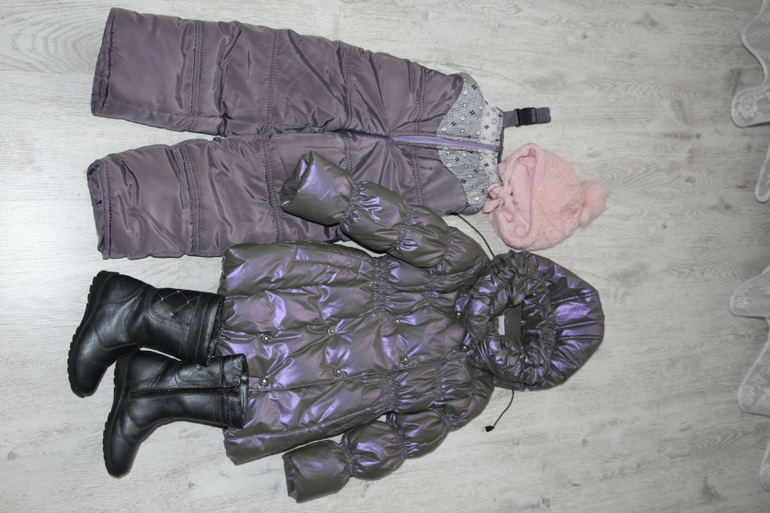 Тёплый пуховик,легко смывается грязь и не промокает.Двойная застёжка защищает шею от ветра.Переливается на солнце.Размер110.,длина 55см,рукав 40см,по плечам 30см,Теплые штанишки, шапочка со сваровскими камнями .Сапожки Зимнии немного поцарапанные,теплые.Размер 27р по стельке 17см.