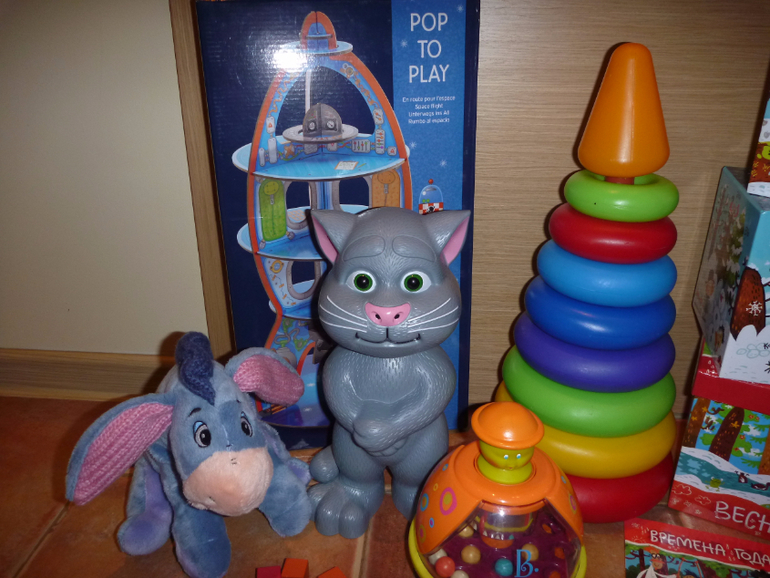 7. Кот интерактивный, подарили младшему на годик, наигрался)) Повторяет сказанное, реагирует разными звуками при касании уха, лап, головы, хвоста. При нажатии на одно ухо играют песенки (16), при нажатии на другое идут аудиосказки/басни (кажется 4-5). Цена 350р.