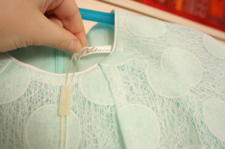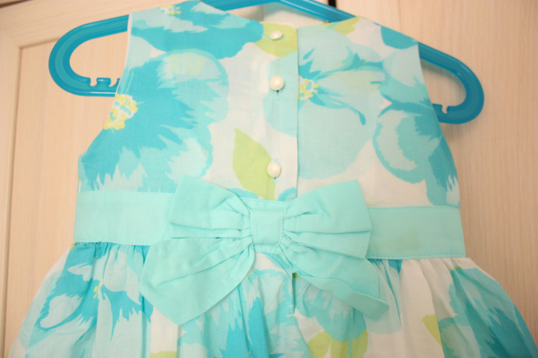 по спинке на жемчужных пуговицах и симпатичным бантом.
