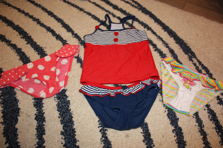 на худенькую девочку 98 см рост, красные плавки в горох можно до 104