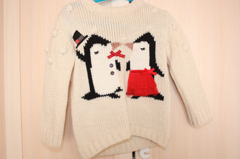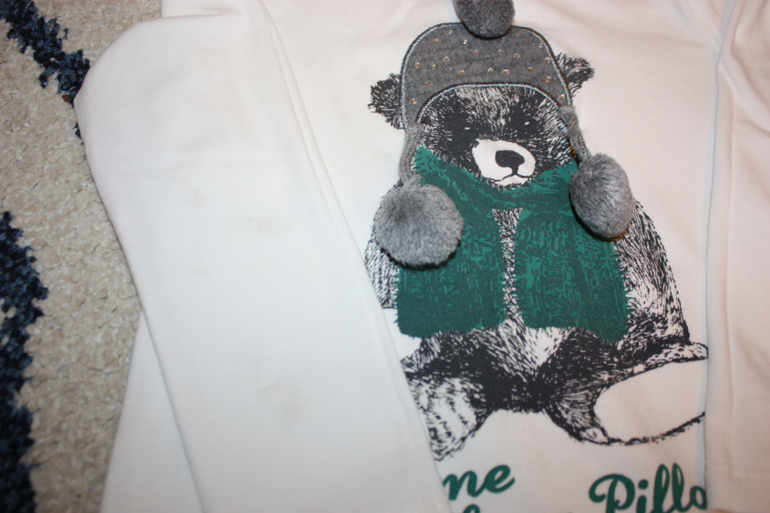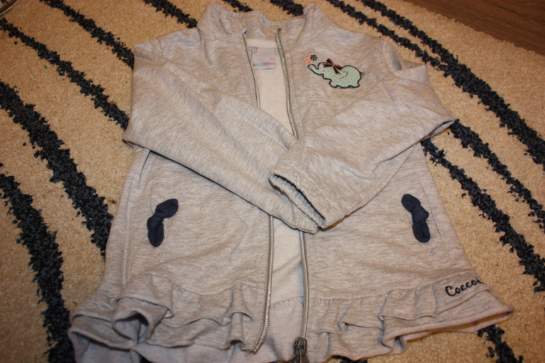 дома ходили( он без дыр и пятен), от частой стирки картинка на кофте подстерлась.